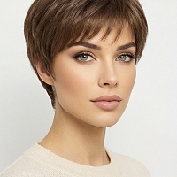 Glamvigor Hybrillia™ Blend Human Hair Classic Warm Brown Short Pixie with bangs Mono Top Wig GMT003