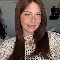 Glamvigor Hybrillia™ Blend Human Hair Soft dark brown long layered straight Lace Part Wig GLP005