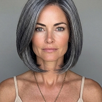 Glamvigor Hybrillia™ Blend Human Hair Black mixed silver short bob Lace Part Wig GLP050