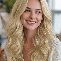 Glamvigor Hybrillia™ Blend Human Hair Soft Platinum blonde with Bouncy little wavy Lace Part Wig GLP055