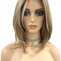 Honey blonde with platinum blonde highlights strands in the front Straight Synthetic Lace Part Wig GLP053