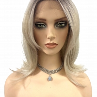 Glamvigor Hybrillia™ Blend Human Hair Light Blonde and Silver White blend with shaded roots shoulder length Lace Part Wig GLP063